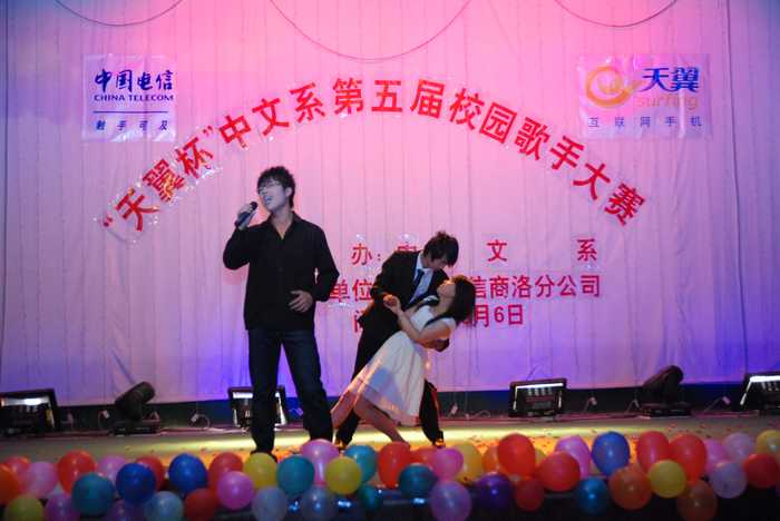 为了体现当代大学生的活力与青春风采,在旋律中唱出个性、展示自我,5月6日,由我系主办、中国电信商洛分公司赞助的第五届校园歌手大赛决赛终于在师生的热切期盼下于大学生活动中心隆重上演。我系党总支书记张彦民,副主任刘勇、蒋正治,体育教学部主任朱书祥出席大赛,我系全体师生现场观看了大赛。