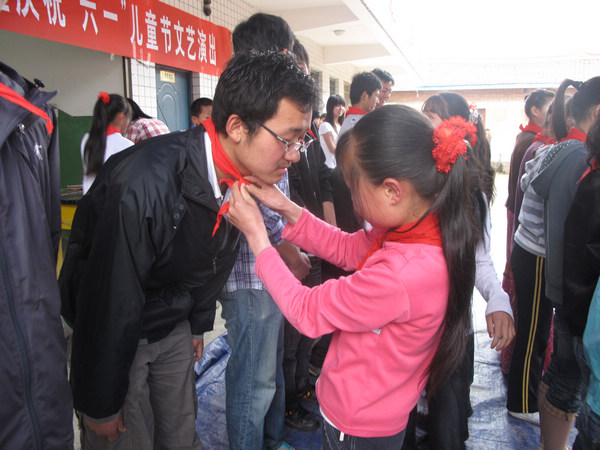 5月31日下午,为了更加充分的教育广大学生学会感恩并为此次活动留念,我系在一号教学楼前举行了捐助活动的签字仪式,副主任刘勇出席并作讲话。捐助活动当天,在西沟小学举办了简单而隆重的捐赠仪式。仪式上,西沟小学学生为我系20名学生代表佩戴红领巾,牧护关镇人民政府为我系授予“情系山区,支持教育”的牌匾。