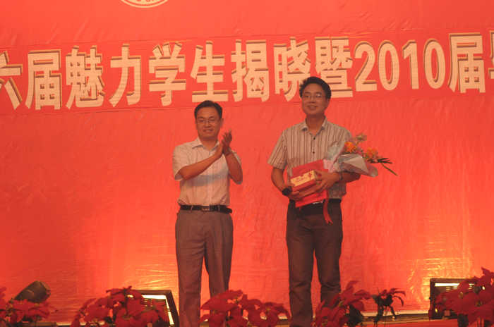 7月2日晚,大学生活动中心内欢歌笑语、掌声雷动。院党委宣传部部长郭英勇、学生处处长潘永前、科研处处长李继高、保卫处处长王国民、院团委副书记蒋正治、教务处副处长杨军以及我系全体党政领导出席我系隆重举行的第六届“魅力学生”揭晓暨2010届毕业生欢送会,并为“魅力学生”颁奖。师生们齐聚一堂,共同见证中文学子的绚丽风采。