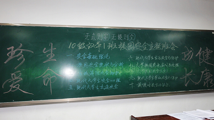 10级汉语言文学一班安全知识板书