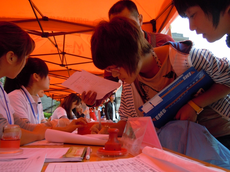 日上午7时前,就已经有不少家长来到学校,上午11时迎来了新生报到的第一个高峰期。虽然下着大雨,但迎新工作仍然在学生会及党支部的协调配合下,有条不紊的进行着。