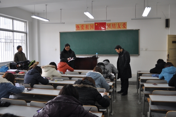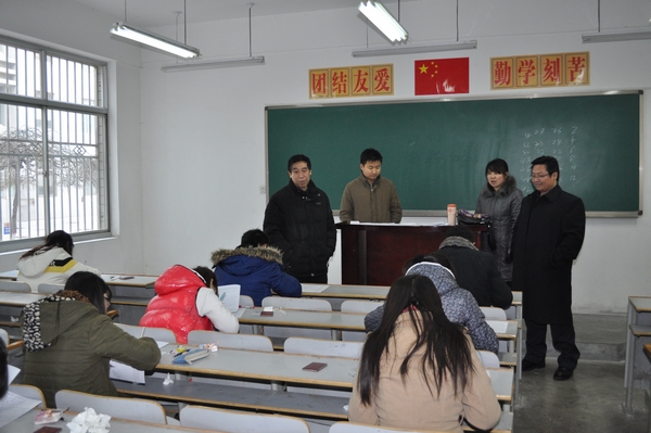 在1月5日和1月10日的期末考试中,我系主任黄元英,党总支书记张彦民,副主任刘勇、杨军深入各考场,检查学生考试情况。