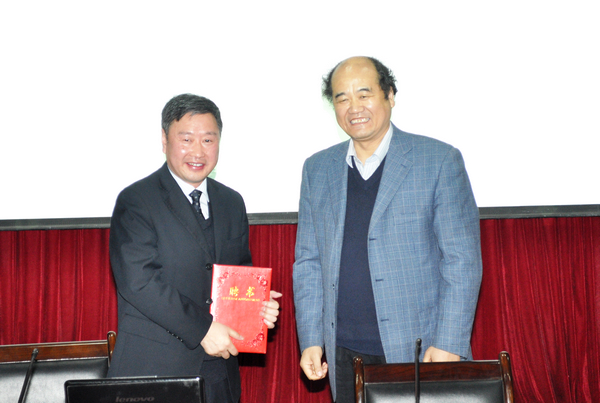 ,商洛著名作家李育善应邀来我系作专题报告,副院长刘建林为李育善颁发聘书,干部人事处处长刘端森、我系主任黄元英分别主持了聘任仪式和报告会。