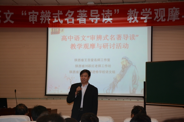 活动由名著导读教学观摩和专题研讨两个板块组成。我院中文系师生观摩了西安市第一中学郭柯老师、户县电厂中学程雪慧老师先后执教的“《堂吉诃德》导读”和“《三国演义》导读”,听取了两位老师的“说课与反思”及陕西省语文教学名师王吾堂等7位老师的专题发言与报告等。我院中文系主任席忍学教授应邀作了专题发言。席老师围绕什么是名著、怎样上好“名著导读”课作了简短发言。他说,有人说名著就是让人在阅读过程中能够发现自己的作品,这很有道理;“审辨式名著导读”教学的设计构想很好,好在可以培养学生个性化阅读的习惯和能力,提高学生的思维品质;名著导读教学的核心在于指导、引导学生,在于教给学生阅读的方法和策略;要引导好学生,须找准好的切入点,因为名著内容博大精深,名著导读教学涉及面也比较广;要找一个好的切入点,必须研究教材,充分领会教材编者的意图,与教材及其编者形成对话关系,确立恰当的教学重点和难点;教学内容不能过深过难,但也不能过于肤浅;要通过课堂教学激发学生课外阅读的兴趣;教师在课堂教学中应该发挥组织学生、引导学生、提升学生的作用。