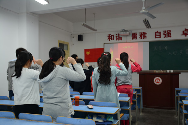 为弘扬五四精神,5月5日,我院在一号楼501教室隆重举行新团员入团宣誓仪式。宣誓仪式由我院团总支副书记李浩主持。我院团总支书记张善红老师、我院部分老团员和新团员参加了宣誓仪式。
