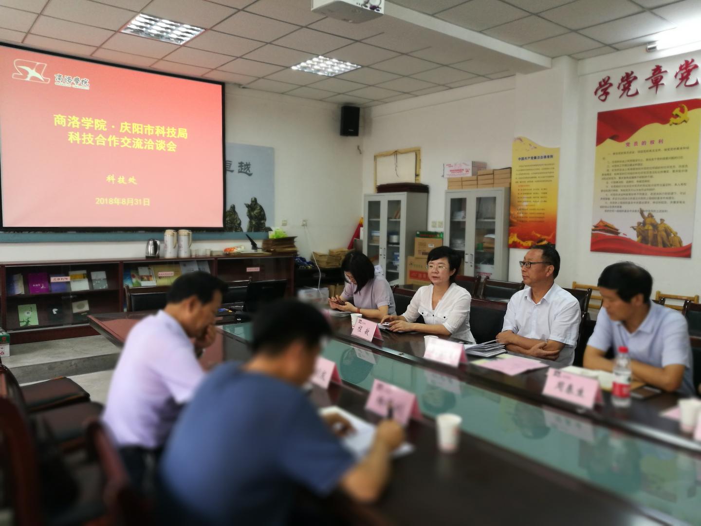 张文诺代表学院对客人的到来表示热烈的欢迎,向客人介绍了我院的发展历史、办学情况和专业特色,希望甘肃省庆阳市科技局此行能够推动双方交流与合作。