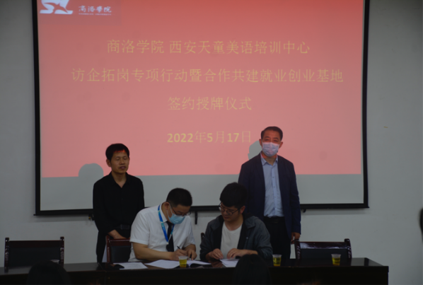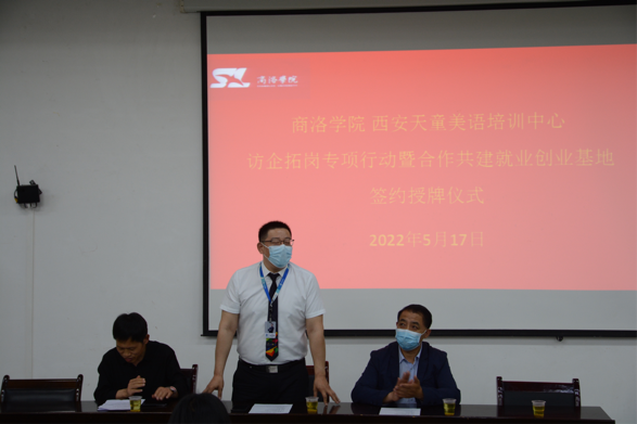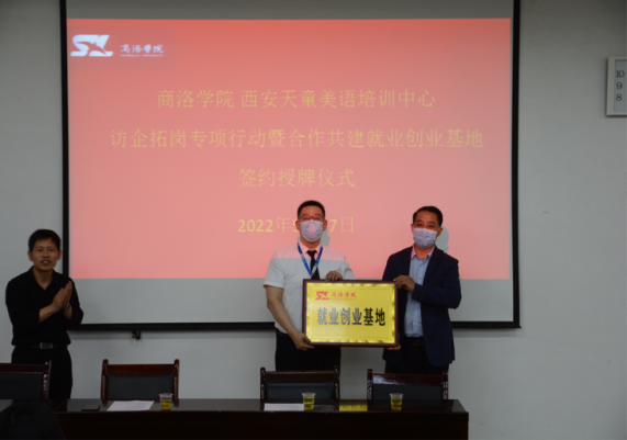 为进一步做好就业创业指导服务工作,拓宽我院2022届毕业生就业渠道,提高毕业生就业质量。5月17日,我院和西安天童美语培训中心在北新街校区1号教学楼报告厅一召开校企合作共建就业基地签约授牌仪式,并就企业近期岗位招聘情况进行宣讲。我校党委委员、副校长王新军、人文学院院长张文诺、全体毕业班辅导员及毕业生代表参与了此次活动。本次签约授牌仪式由人文学院院长张文诺主持。