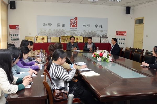 4月12日下午,《名作欣赏》副主编王朝军应邀来到我校,为我系师生作了题为《当代小说大杂拌》的学术报告,并和中文系教师进行了座谈交流。中文系主任黄元英主持座谈会,中文系副主任杨军主持学术报告。