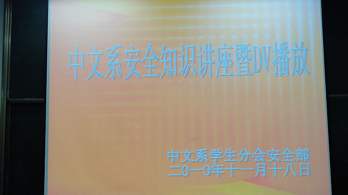 系分会副主席郑训文、安全部部长李康、宣传部部长王帅还从防雷、防抢、防水、女生人身安全等方面做了补充发言。随后放映了09年我系学生自编、自导、自演的大学校园安全教育DV短片。短片通过生动的模拟展示,为大家指出了日常生活中的安全问题,并讲解了防范措施。